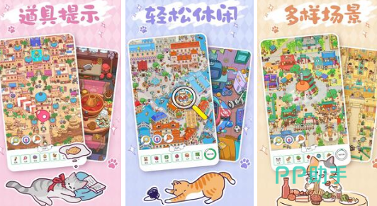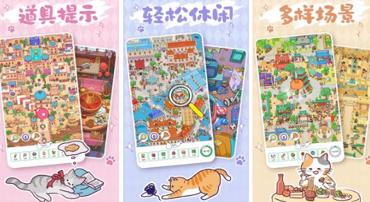 猫猫世界为题材的寻物解谜手游,在具体的视觉效果上也非常别致,仿佛真正来到梦幻又卡通的童话世界中,可在海边小镇以及海滩等不同的主题当中探索,整体的音效设计轻快又灵动,增强寻物过程当中的沉浸感。玩家可在无比复杂的动态场景当中,通过仔细观察细节,来寻找到细微的宝藏有很多都是隐蔽性极高的特定物品。