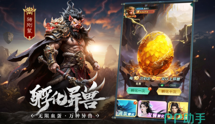 区别于传统山海题材呈现,《异兽灵境》运用动态骨骼渲染与多层景深技术,实现异兽毛发、鳞甲、灵焰的细腻表现;场景融合甲骨刻痕UI、青铜器浮雕动效与动态天象系统,强化上古文明厚重感。孵化系统打破初始阵容限制,让玩家从低阶异兽起步,逐步培育专属神将体系,在收集、养成与策略协同中获得持续成长满足感。