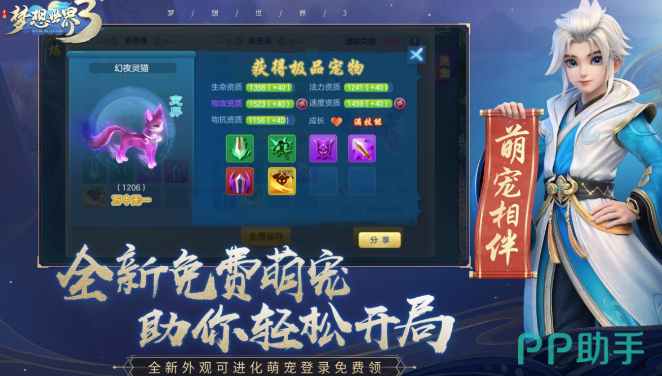 延续“梦想世界”系列经典回合制内核,《梦想世界》3在保留原有社交生态与经济系统基础上,全面升级画面表现与内容体量。新增多套主题萌宠、动态天气系统及跨服竞技场;挂机收益机制优化,离线也可积累关键资源;宠物培养路径清晰,技能搭配自由度高,兼顾休闲玩家与重度养成用户需求。