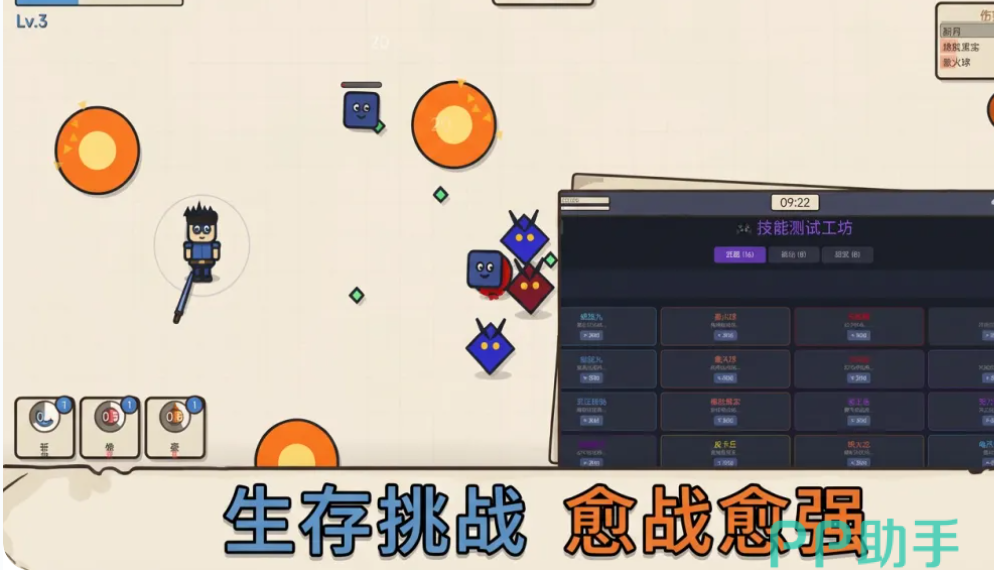 《纸片乱斗幸存者》核心玩法围绕技能驱动型战斗展开。游戏提供16个主动技能,包括旋风弹、火球术、弹射拳、斩月等,每项技能具备独立攻击逻辑与视觉表现;需通过实战积累经验升级,逐级解锁新形态与特效变化。此外,系统内置8个被动强化技能与8种超级武器,玩家需依据怪物类型、地形结构及关卡机制动态调整配置方案。
