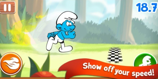 这是一款横向卷轴式跑酷游戏,主打轻松节奏与即时反馈。角色采用Q版球形建模,动作表现憨态可掬。玩家控制蓝精灵沿固定路线前进,途中需规避障碍物、拾取增益道具(如加速、减速、护盾),并触发环境互动事件。关卡通关即自动解锁新角色,无需重复刷图;失败后可立即重试,节奏紧凑不拖沓。背景音效融入角色拟声呼喊,进一步强化沉浸体验。