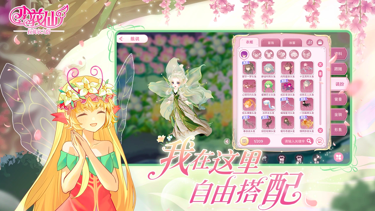 个性化形象系统全面升级,内置超百套服饰自由混搭,涵盖田园清新、宫廷华美、暗黑幻想等多种风格。不仅支持服装更换,还可自定义精灵羽翼形态、面部妆容细节、发饰配色等,真正实现“千人千面”的花仙人设。