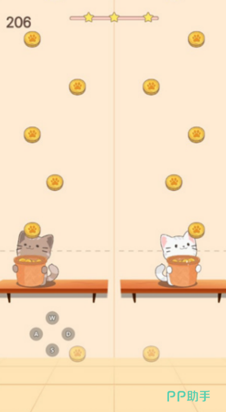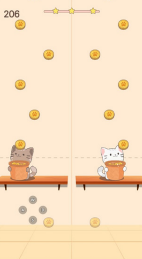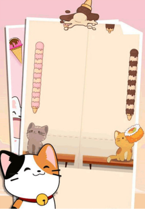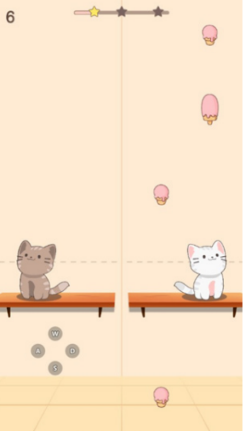 游戏采用柔和细腻的手绘风美术设计,将节奏互动、角色养成与轻度音乐玩法深度融合。在核心玩法中,玩家可操控两只猫咪协同配合,精准接住自上而下坠落的食物道具,操作成功将触发对应音符反馈,不同猫咪演唱的旋律各具特色,营造沉浸式听觉享受与情感共鸣。