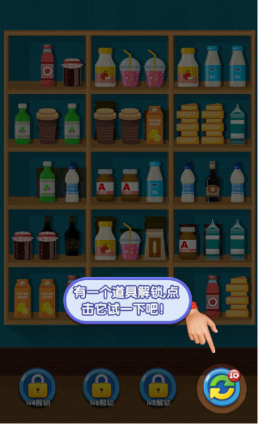 融合经典三消机制与收集养成玩法,全作共设六大主题场景,每个场景配备造型各异的购物篮。玩家需在限定区域内识别并点击三个相同物品完成消除,逐步清空画面以解锁新地图。物品采用多层堆叠布局,考验观察精度与反应速度,提升策略性与重复可玩度。
