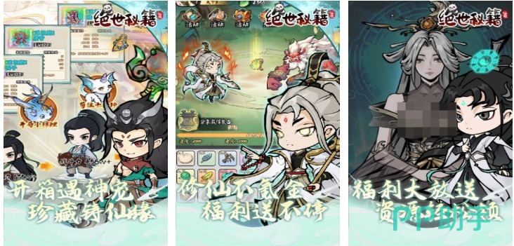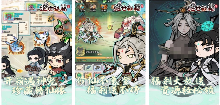 《绝世秘籍》采用独创水彩手绘美术风格,界面UI融合卷轴、印章、朱砂等传统元素;回合制战斗加入“秘籍领悟”机制,通过副本收集残卷碎片,拼合后解锁全新技能组合;资源获取采用盲盒式抽取系统,含保底机制与重复转化功能;零氪玩家可通过每日奇遇、宗门贡献、秘境探索等途径稳定积累养成资源,经济系统设计注重长期可持续性。