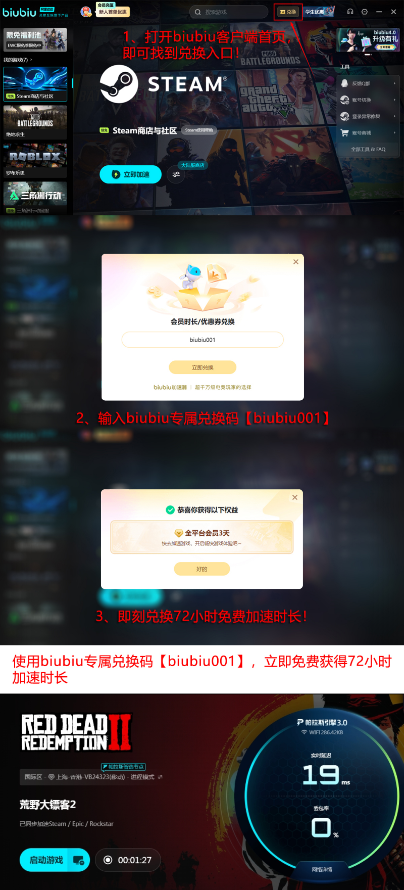 跨区域联机或调用在线服务(如Red Dead Online模式)时,因DNS解析延迟、路由跳转不稳定、TCP重传率高等网络层问题,将显著提升闪退概率。针对此场景,biubiu加速器提供专项优化方案:依托帕拉斯3.0智能路径调度引擎,结合九游、交易猫与biubiu加速器同属阿里巴巴灵犀互娱旗下产品的协同技术能力,实现跨网段低延迟直连。新用户注册后可获赠24小时免费加速时长;输入兑换码【biubiu001】还可额外领取3天权益;新老用户叠加使用,最高可享96小时连续加速服务。
