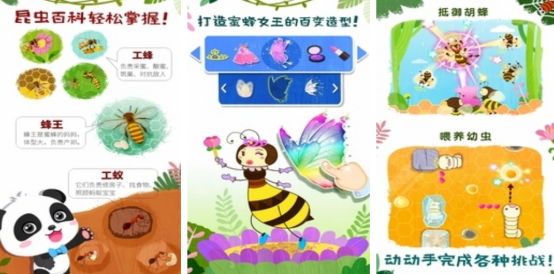 以昆虫生命周期为主线设计探索式学习场景,涵盖蜜蜂、蚂蚁、蚊子等50余种常见节肢动物。设置幼虫成长模拟系统,通过采集花蜜、规避天敌、建造蜂巢等轻策略任务,帮助儿童理解生物发育过程。提供角色装扮系统,含50+款服饰配件,支持自由组合蜜蜂女王造型,强化审美表达与创造力训练。