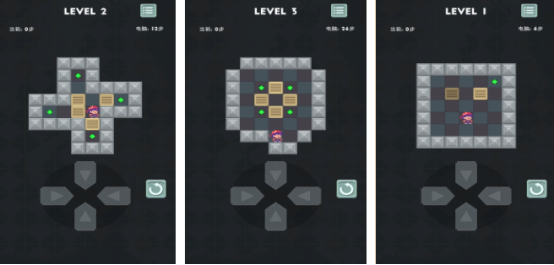 在保留原版玩法精髓基础上,升级为3D建模渲染,以横版视角呈现立体空间感。地图中箱体初始位置随机分布,叠加动态障碍物(如可移动挡板、限时机关),提升环境复杂度。玩家需综合判断高度差、遮挡关系及移动顺序,确保所有目标点被一次性覆盖,避免通道堵塞或位置锁定。