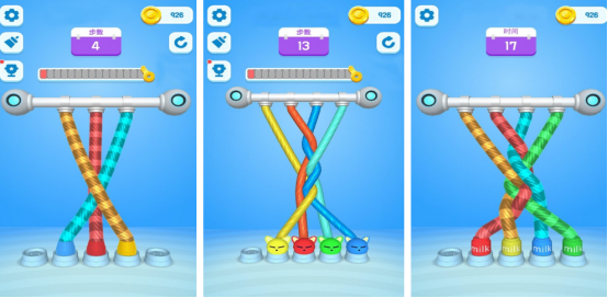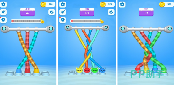 聚焦绳结结构解析,关卡由专业谜题设计师逐帧构建。每关呈现缠绕形态各异的绳索系统,含交叉节点、滑动扣件、弹性回缩等拟真特性。玩家需在步数或时间限制内完成全部解结动作,支持个性化外观更换,包括卡通主题皮肤与几何纹样皮肤等多种风格选项。