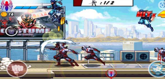 横向卷轴式高速跑酷玩法,场景建模深度结合曼哈顿街区特征,包含摩天楼群、地铁隧道、屋顶天线阵列等典型空间结构。关卡内嵌入实时对抗机制,玩家需在高速位移中完成闪避、反击、蛛网牵制三重操作,每章节设有时限挑战、连击目标及危机解除条件,强调操作精度与节奏把控能力。