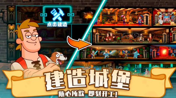 《喧闹的城堡》是一款融合中世纪奇幻设定与卡通美学的策略模拟经营手游。玩家将化身一国之君,在充满魔法与冒险的世界中从零开始构筑专属王国——规划城墙布局、建造兵营与工坊、升级粮仓与炼金塔,逐步打造坚不可摧的防御体系与高效运转的生产网络。