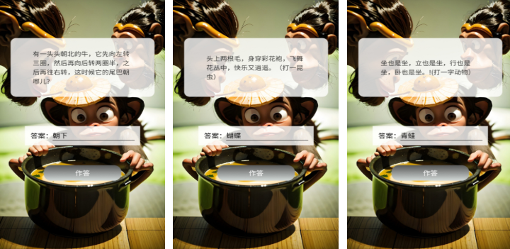 融合知识问答与剧情解谜的轻量级休闲游戏。玩家在虚拟集市场景中与拟人化猴子NPC互动,通过回答涵盖自然科学、人文历史、生活常识等领域的题目解锁新区域与隐藏故事。音效还原丛林市集氛围,猴子叫声采样真实,界面排版清晰,题库持续更新,兼具教育性与娱乐性。