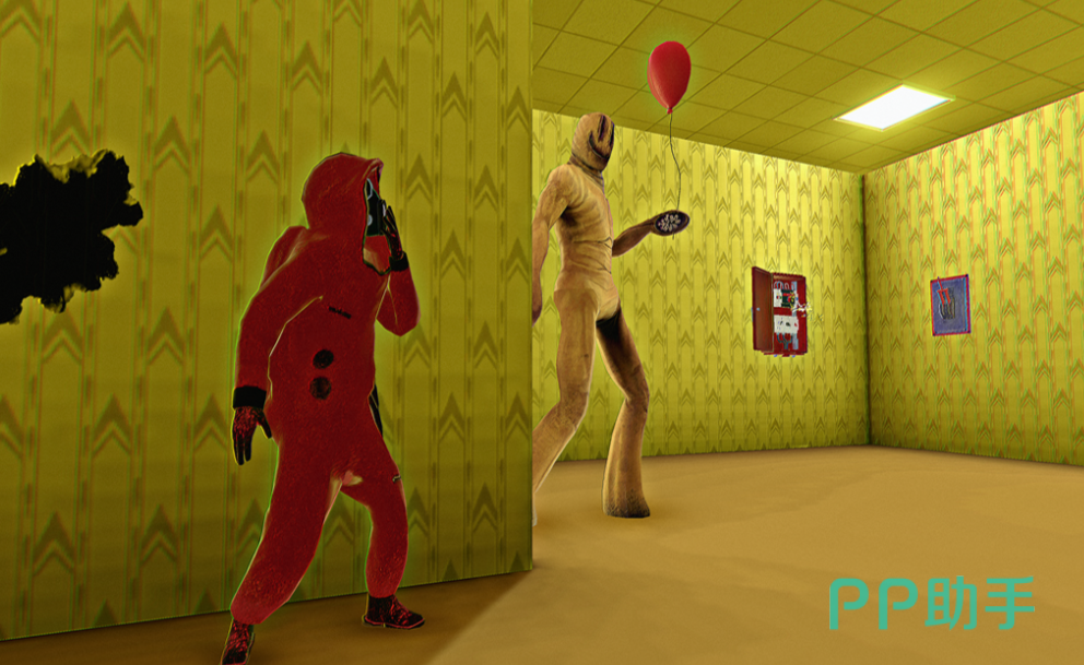 基于后室(The Backrooms)概念开发的多人对抗型恐怖游戏,支持1V4非对称竞技。平民方需协作收集钥匙、修复电路、破解密码;猎手方则利用地形优势实施围猎。写实级3D建模配合动态阴影系统,使昏暗走廊与模糊转角充满不可控威胁感。