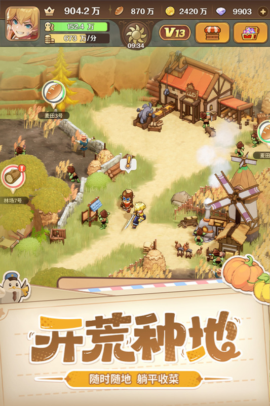 除内政建设外,游戏还融入轻量冒险玩法:接受委托执行村民搜救任务,组建远征部队抵御魔王军进攻;同时支持离线收益机制,农田耕作、资源采集等基础生产随时间自动累积,大幅降低操作负担,适配通勤、午休等碎片化场景。
