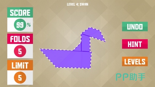 主打低压力、高完成感的创作型玩法。游戏提供数十种纹理与色系纸张,初始仅给出目标图形轮廓,不限定步骤顺序与折痕路径,鼓励玩家通过试错探索最优解法。内置“折痕回溯”功能,便于复盘思路;成就系统侧重过程记录而非结果速通,契合静心专注的折纸本质。