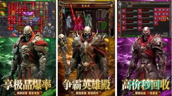 作品根植于西方魔幻世界观,采用怀旧像素美术风格,融合骷髅、深渊、古龙等标志性暗黑元素。创新引入双英雄协同作战机制,职业体系沿袭战、法、道三系设定,各具独立技能链与成长路径。当英雄殿等级提升至5级后,第二英雄系统正式解锁,实现角色能力维度拓展与战术组合升级。