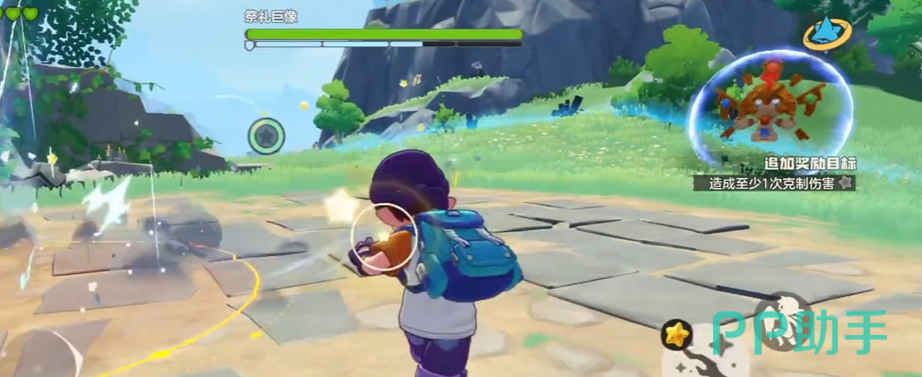 4、祭礼巨像:首阶段主要释放横向地刺阵列及追踪光波,光波会在地面持续扩散红色伤害区域,观察红圈延展轨迹即可预判躲避;进入二阶段后,其本体附带双重属性抗性,建议根据实时属性反馈灵活切换克制系宠物,例如针对其显现的冰+岩双属性组合,优先选用火系或钢系高命中宠物进行打击。