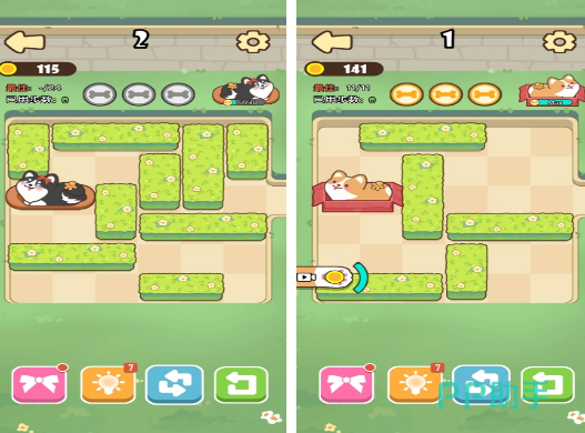 一款以华容道逻辑为基础的益智解谜手游。玩家需操控一只拟人化小狗,在由花丛、石阶、篱笆构成的二维花园地图中规划移动路径,避开障碍、激活机关,最终将其引导至指定出口位置。全游戏包含超200个原创关卡,难度梯度平缓,支持撤销、重试、提示等功能;同时开放宠物形象自定义系统,可更换项圈、帽子、围巾等配件,增强个性化表达与情感联结。