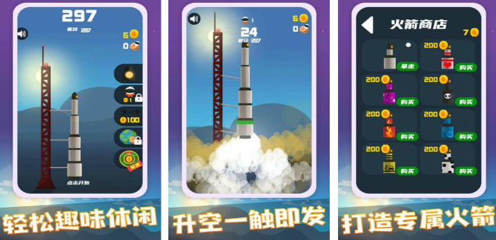 一款卡通风格火箭升空模拟器,以轻量化交互呈现垂直起飞、级间分离、轨道入轨等关键流程。美术设计清新明快,操作仅需单指长按调节推力,配合自动稳定系统降低上手门槛。内置科普图鉴模块,涵盖主流运载火箭参数对比与基础航天术语解析。