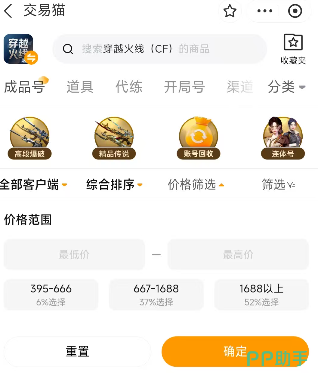 面对海量CF账号,价格区间跨度大,新手用户常因筛选逻辑不清晰而耗费大量时间。交易猫内置智能价格过滤系统,支持按指定金额范围(如500–2000元、3000元以上等)快速锁定目标商品,显著提升浏览效率与决策精准度,帮助用户在短时间内定位符合预算与需求的理想账号。