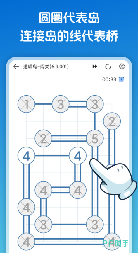 一款专注逻辑链路构建的轻量级益智作品。界面采用极简主义风格,以点线结构为核心视觉元素——每个圆点象征一座岛屿,数字提示代表该点需连接的线段数量。玩家需依据拓扑规则,在不交叉、不重复的前提下完成全图连通。操作直观但策略纵深明显,适合碎片化时间进行高强度脑力训练。