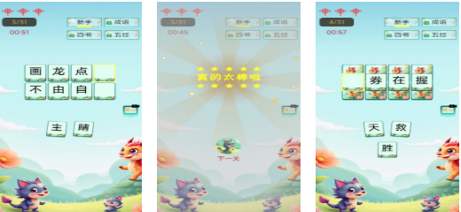 融合古诗文素养与文字推理的益智产品,主打成语接龙、诗词填空等经典玩法。水墨风界面简洁雅致,触控响应灵敏,无需复杂教程即可上手。通过高频次词语联想训练,有效提升语言敏感度与文化常识积累,适合学生群体及传统文化爱好者日常练习。