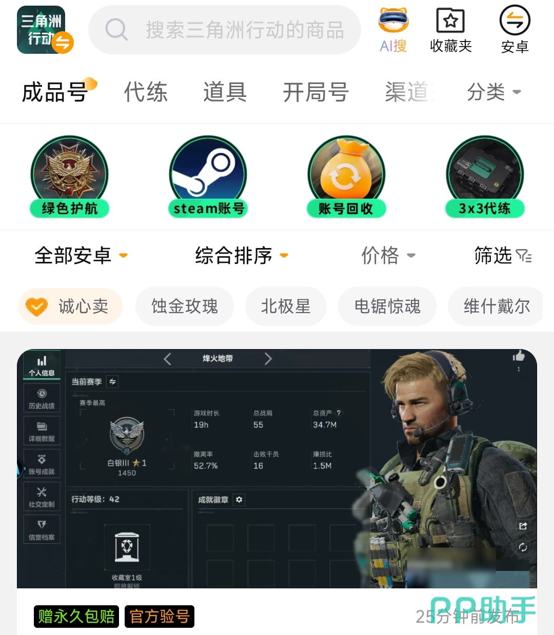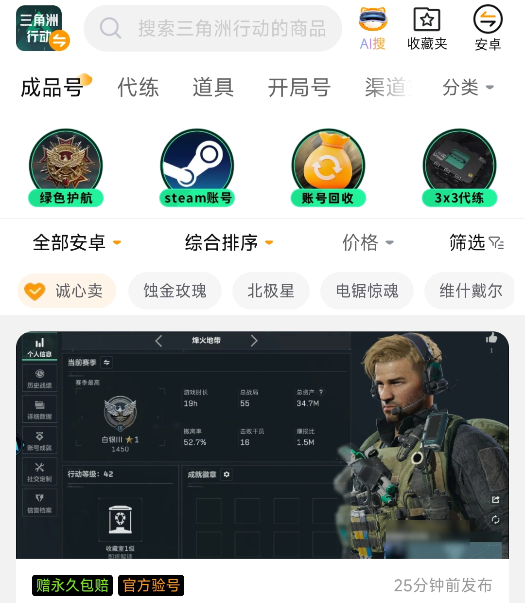 《三角洲行动》作为当前热门的战术射击类手游,凭借高自由度的地图机制、拟真枪械系统以及强调团队协作的PvP/PvE玩法,持续吸引大量核心玩家。不少用户希望快速获取高战力账号,但通过常规刷图与资源积累解锁顶级武器(如MK14 EBR、Mk47 Mutant等)周期长、成功率低,且需投入可观时间与充值成本。相较之下,选购成熟账号成为更高效的选择——而账号交易渠道的安全性、售后保障与筛选效率,直接决定用户体验。
