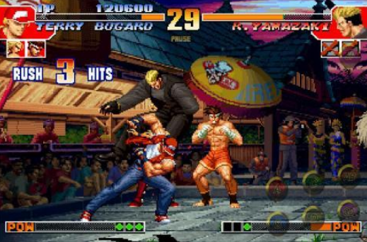 基于SNK正版IP打造,八神庵、不知火舞等经典角色建模精细,动作演出依托3D物理引擎实现高帧率打击反馈。游戏场景涵盖酒吧、格斗场等标志性地图,1v1单挑、车轮战等多种模式并存,兼顾怀旧氛围与现代操作逻辑,满足不同段位玩家的竞技需求。