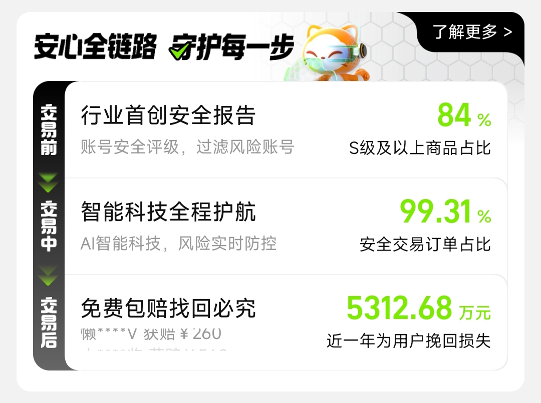 针对用户普遍关注的交易安全问题,平台构建了“四重防护体系”:买卖双方实名+人脸双重核验、交易资金由支付宝全程监管、订单自动触发履约协议、异常行为AI实时风控拦截。建议新用户首次使用时,优先查阅“安全中心”模块,了解账号过户流程、申诉通道、冻结解封规则等关键节点,从而规避私下交易、虚假截图、非平台支付等高风险操作。