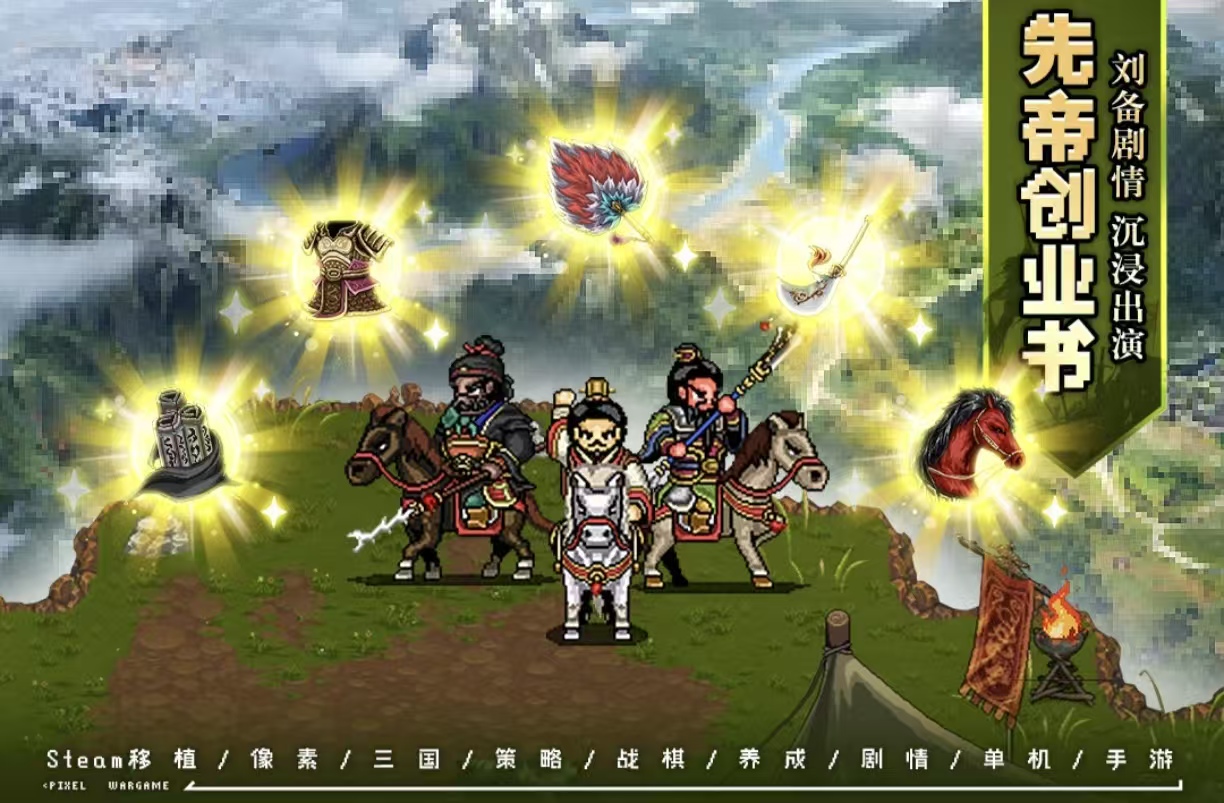 以手绘像素风重构三国历史图景,主线覆盖黄巾之乱至赤壁之战等重大事件,嵌入大量考据向支线与隐藏彩蛋。每场战役受实时天气影响(雨天限制火攻、雪地降低移动力),兵种阵型支持前中后排自由配置。系统涵盖内政(粮草/人口/城建)、外交(结盟/宣战)、探索(秘境/古籍)等维度,实现战棋玩法与宏观策略的深度融合。