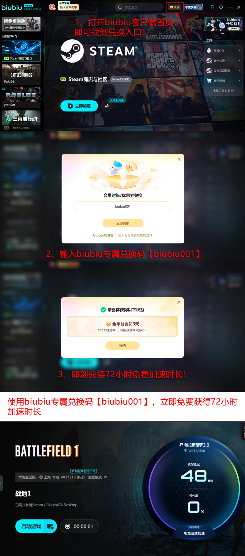 biubiu加速器作为专注外服游戏优化的工具,已适配《战地1》全版本服务器节点。其搭载自研帕拉斯3.0智能调度引擎,支持动态路径优选与TCP/UDP双协议深度优化,可有效缓解跨洋连接抖动、首包超时及TLS握手失败等问题。该产品为阿里巴巴灵犀互娱旗下产品之一,与九游、交易猫同属同一技术生态体系。新用户注册即可获赠24小时免费加速时长;输入专属兑换码【biubiu001】还可额外领取3天权益。两项叠加后,首次使用用户总计可享96小时无门槛加速服务。有需要的玩家可及时领取体验。