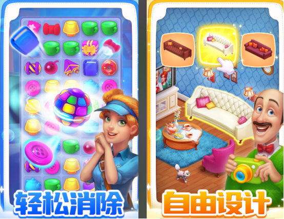 采用清新卡通画风的三消+家装融合玩法,适配全年龄段用户。玩家在经典关卡推进中完成消除挑战,同步解锁并自定义房间布局、花园景观与装饰主题。剧情线索贯穿主线,道具系统支持策略性释放,提升闯关效率与沉浸感。