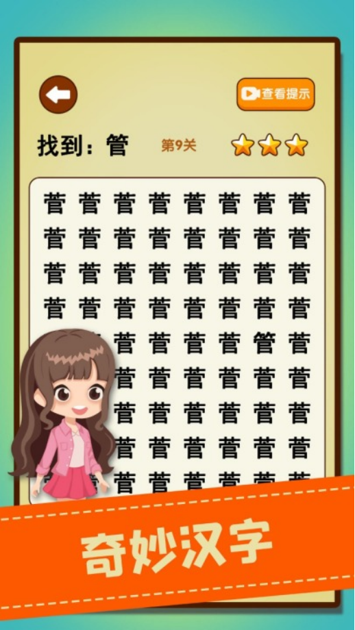 聚焦汉字辨析能力,游戏设计围绕形近字、同音字、笔画微差展开。关卡递进中,单屏汉字数量持续增加,相似度显著提升。提供双模式:单组筛查模式(从一组高度雷同汉字中识别异类)与双文对照模式(比对两段近似文本,限时定位错字、漏字或冗余字),全面考验文字敏感度与短时记忆效率。