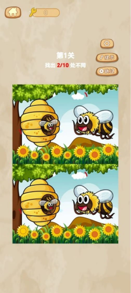 采用清新明快的插画风,关卡结构丰富,主题覆盖家居生活全场景——从卧室陈设到厨房器皿,细节考究且富有生活气息。核心玩法为经典双图对比,玩家需在倒计时内圈出所有差异点。随着进度推进,差异类型由显性(颜色、位置)逐步过渡至隐性(纹理、配件、光影),耐玩性与策略性同步增强。