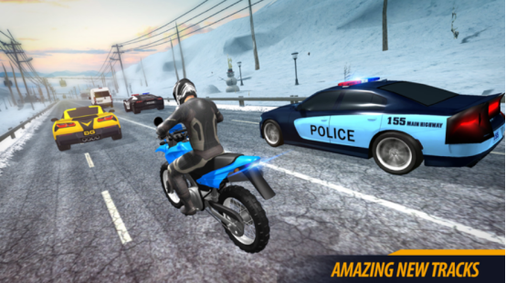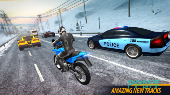 以高性能摩托车为核心载具的无尽竞速类单机游戏。赛道覆盖高速公路、都市街道等拟真场景,随机生成障碍与车流,要求玩家实时判断跳跃时机、保持高速稳定性,并在躲避交通车辆的同时积累分数。操作响应灵敏,节奏紧凑,适合碎片化时间体验。