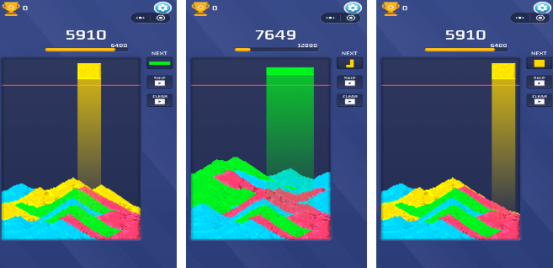 将传统刚性方块解构为流动性粒子单元,每粒“流沙”具备独立色相与体积参数。玩家通过水平滑动手势调控流沙堆叠轨迹,同色区域接触后自动聚合成可消除单元。物理引擎模拟重力坍缩效果,消除后产生连锁下沉反应,形成多层动态清除链路。