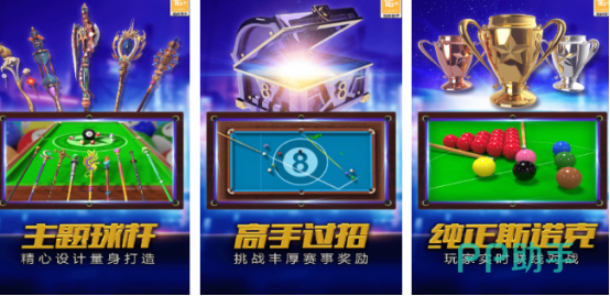 聚焦国际标准台球竞技体验,涵盖职业巡回赛、挑战杯、排位积分等多种正式赛事结构。创新引入技能驱动型玩法体系,弱化纯数值计算依赖,强调策略释放节奏——如“乾坤大挪移”实现球体位移重置,“时间静止”暂停对手操作窗口,拓展传统台球战术维度。