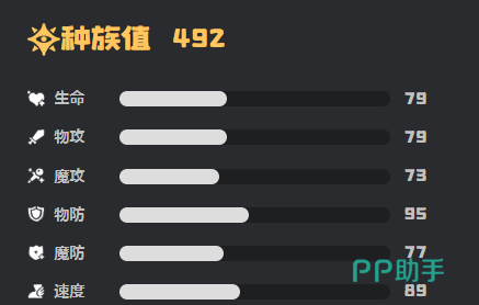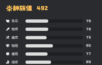 该精灵拥有翼属性与恶属性双重特性,总种族值为492。数值分布呈现高度均衡化特征:各项能力无明显短板,亦无突出单项优势,整体表现稳健,适应多种战斗节奏与阵容搭配需求。