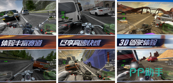 提供职业模式、无尽模式与计时挑战三种玩法路径。职业模式中设有阶段性奖励任务,完成即可获得金币;无尽模式下赛道随机刷新对手,考验玩家超车时机与弯道控制能力;车库内置多款可选摩托,支持个性化改装与性能调校,适配不同竞速风格。