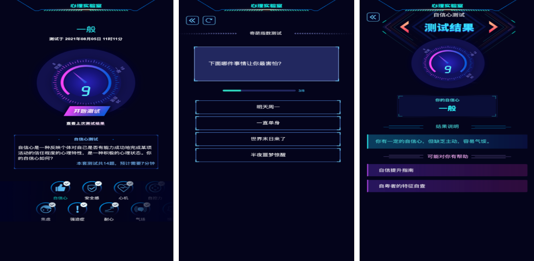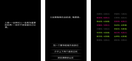 采用结构化心理测评框架开发,题库涵盖大五人格、焦虑敏感度、依恋类型等基础维度。每轮测试后提供可视化图表解析,并匹配对应生活场景建议。科幻美术风格强化沉浸体验,选项设计规避诱导性表述,确保反馈结果具备参考价值。支持离线使用,无强制联网要求。