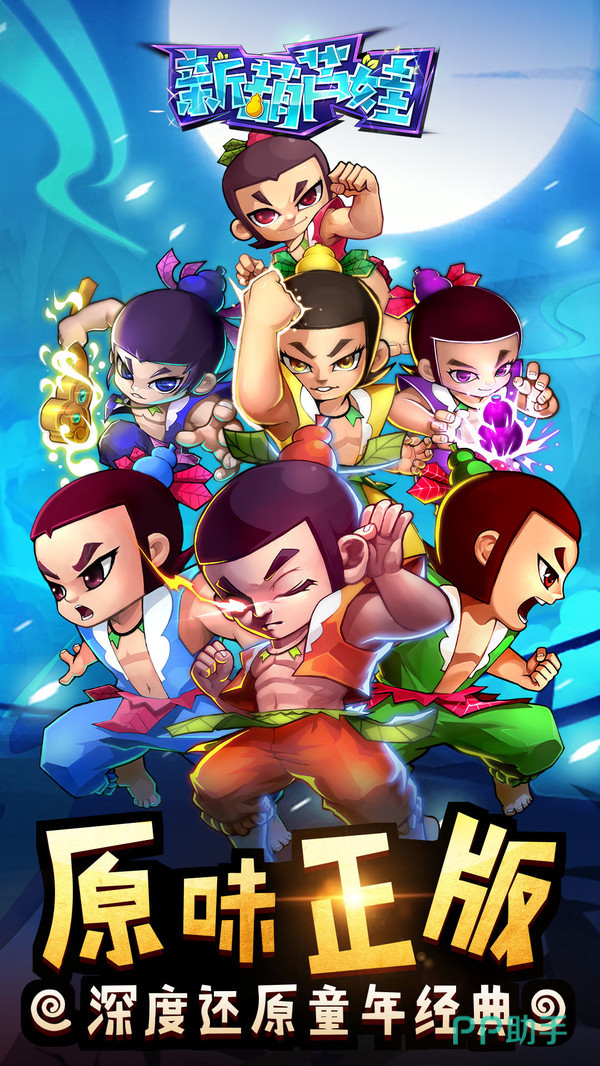 本作高度还原原版剪纸视觉语言,角色建模与场景设计均延续手工艺质感。主线剧情严格遵循动画原著脉络,玩家可自由选择七位葫芦娃中任意角色组建队伍,深入山林洞府挑战蛇精、蝎子精等经典反派。特色多人实时PVP系统支持跨服布阵对抗,每位角色技能机制紧密对应其动画设定,如大娃力拔山兮、二娃千里眼顺风耳等,实现策略性与代入感的双重强化。