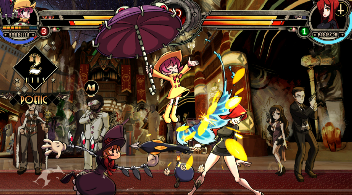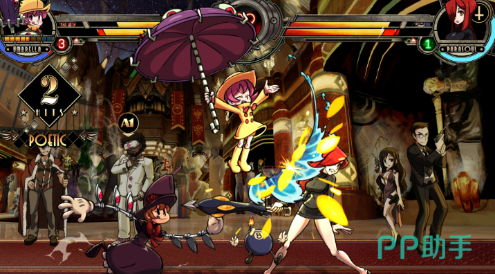 融合哥特美学与高速格斗玩法的经典IP移植版本。角色以夸张比例与鲜明色块构建视觉记忆点,招式命名与演出设计充满戏剧张力。系统内置“Blockbuster”超必杀系统,需通过连段积累能量释放全屏级特效技。音效由专业配音团队录制,台词与打击音效节奏高度同步,配合手柄震动反馈,增强操作沉浸感。