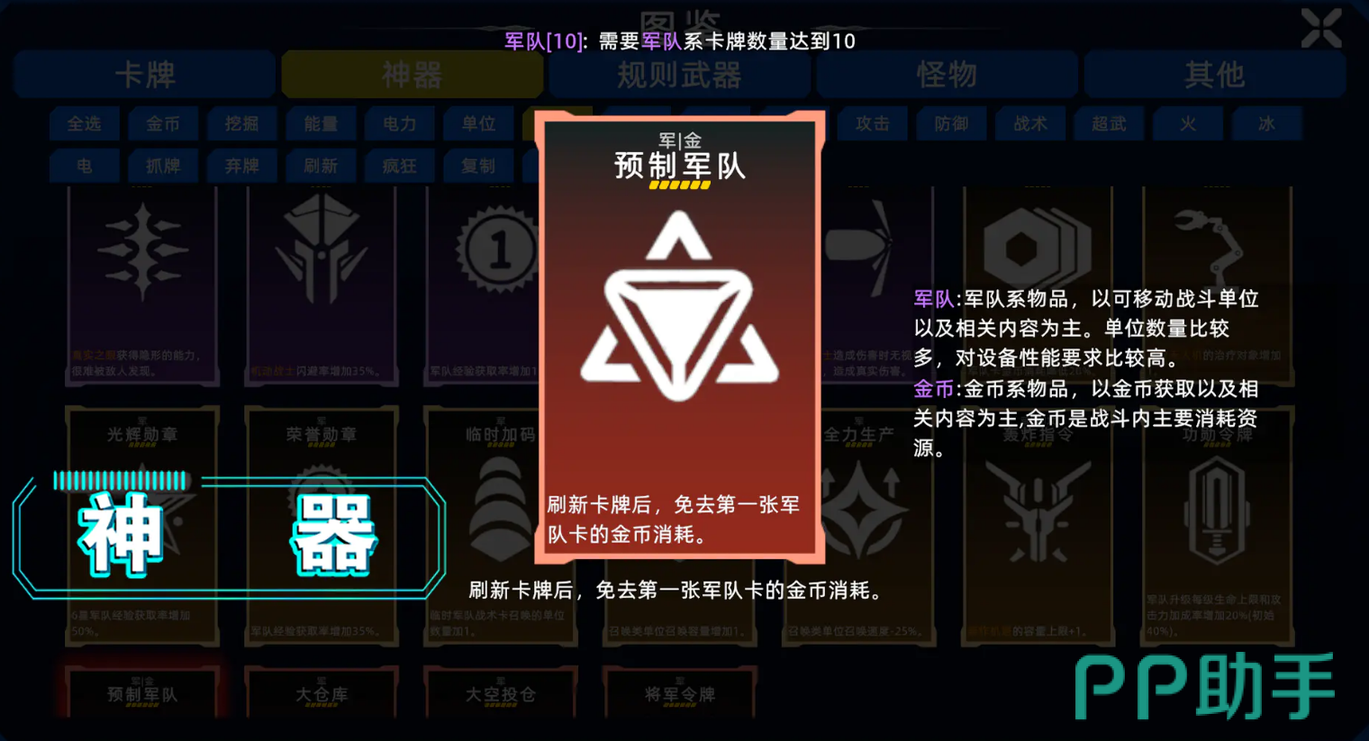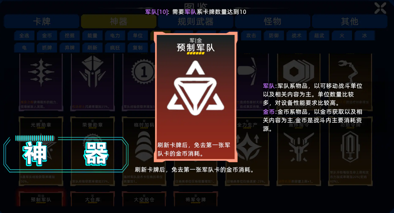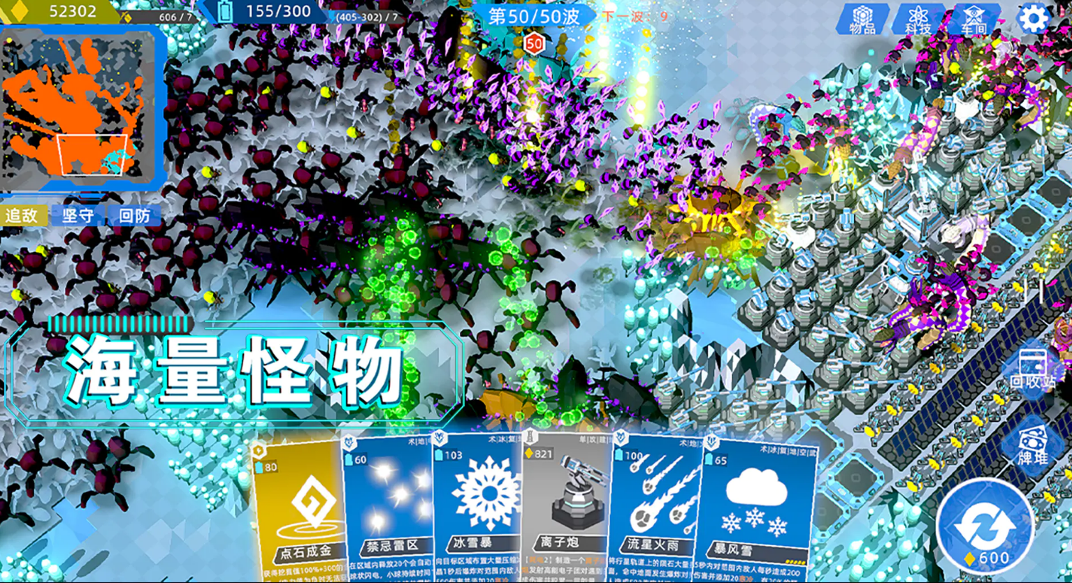 游戏中共设计超百张功能型卡牌,覆盖资源采集、战术部署、辅助增益三大核心方向。玩家可通过合成机制对基础卡牌进行进阶升级,例如将金属卡与能源卡组合生成等离子炮台,或借助科研技术解锁高级防御模块,从而构建更具适应性的基地防御体系。
