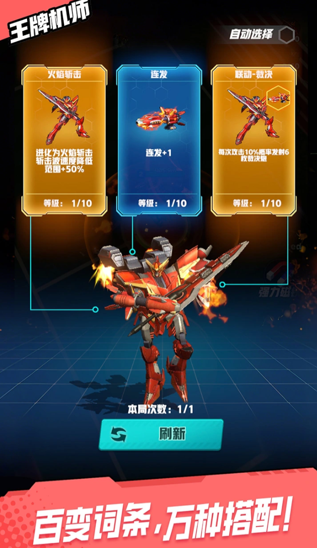 战斗系统围绕“模块化武装”与“形态自定义”两大核心展开。玩家可自由装配陨星炮、能量护盾、超级飞弹等高破坏力载具武器,并在空战过程中实时切换机甲构型——包括轮廓剪影、装甲配色与关节结构等视觉元素,实现从性能到外观的全链路个性化塑造。操作层面采用单手精准瞄准机制,配合全屏范围扫射功能,面对密集变异敌群时可高效清场,带来行云流水的割草式打击反馈。