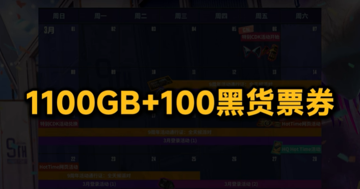 3月21日,PUBG官方网页活动正式上线。参与者可直接领取100张黑货票券,用于商城道具采购;同时还将发放总计1100GB游戏货币,覆盖全服用户,无门槛领取。