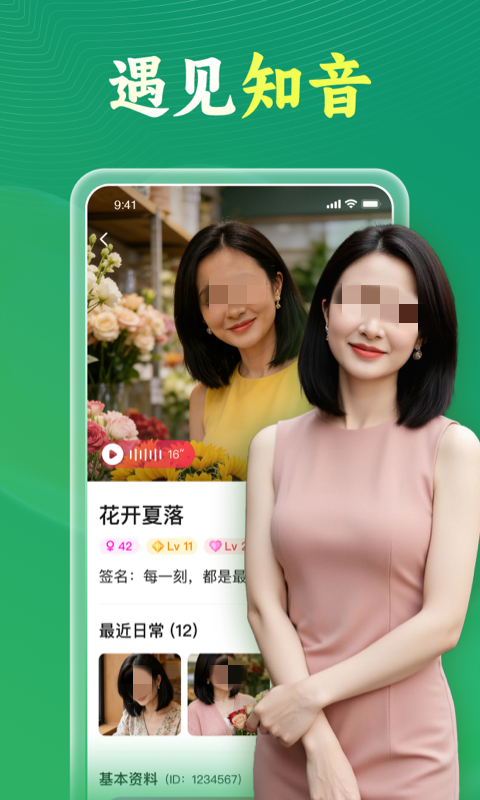 针对中老年设计的交友软件,因为都是属于同一年龄段,所以可敞开的和同龄人一起聊各种趣事。这里的注册用户需要进行严格的认证,并详细展现各种信息,可以帮助全面了解对方的生活状态,所以在情感表达方面自然也会更加真实。
