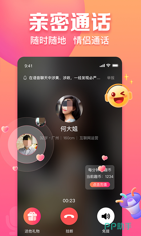 这里汇聚了上千万优质的单身男女青年可随时在线聊天。如果相互好感喜欢,还能进行更有趣味的语音互动,甚至是交友约会。平台还推出了24小时抛绣球的活动,参与进来也能快速找到有缘人。因为在信息方面进行了严格审核,所以在这一方面还是值得信赖的。
