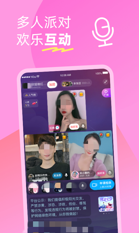 软件始终专注于在移动端进行交友,将音频视频,直播还有线上主持人等各种交友元素融合在一起,开辟了一条独立的赛道。这里有海量活跃的线上主持人,每天都会在线上主持交友活动。不仅给用户带来了全新的社交体验,在约会成功率方面也得到了大幅度提升。