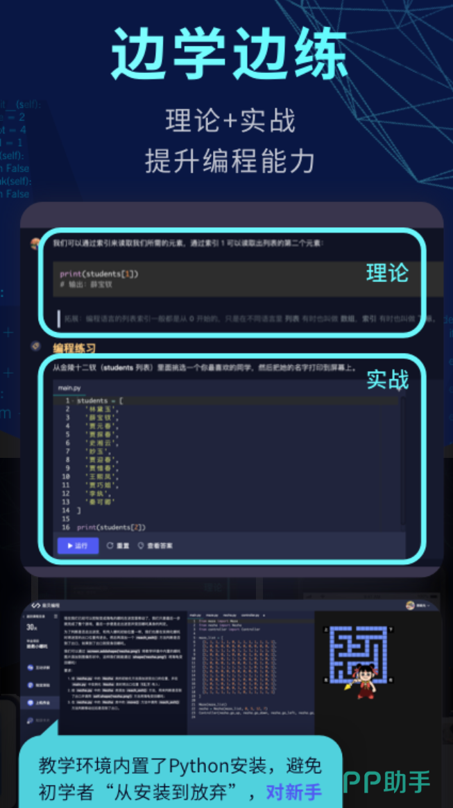 Python方向的课程体系做得比较完整,从语法基础到实战项目都有安排。视频课时长超过两百小时,配套的练习题也有五百道以上,学完一节就能动手练,不是纯看视频。课程里的案例挺接地气,用Python分析数据、处理文件这类场景都有涉及,学完能直接用上。平台有专属助教跟进学习进度,社区里也有编程挑战活动。