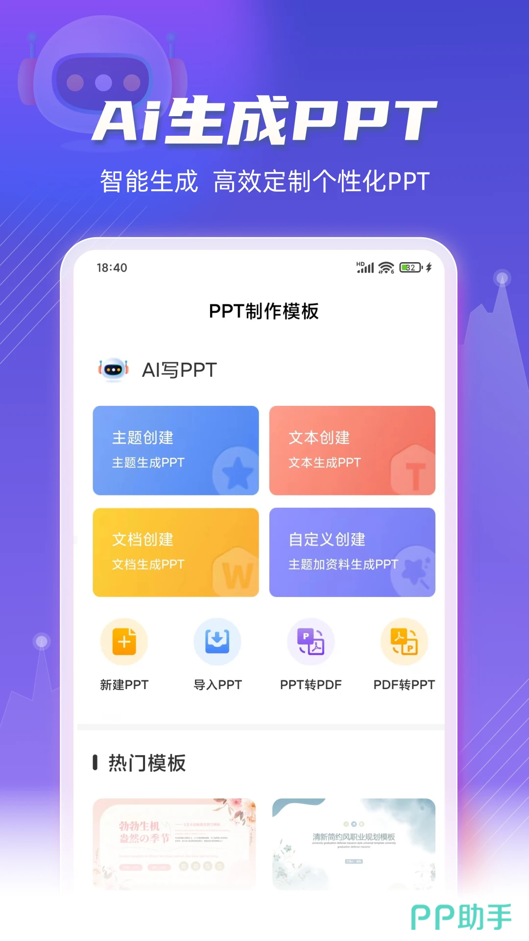 功能强大的制作软件,制作的功能非常齐全,手机也能做出精美作。模板覆盖有项目策划、总结汇报、毕业答辩等各种实用的小场景,并且频繁的更新热点,更有AI一键生成,只需输入主题就能帮你完整内容和大纲。